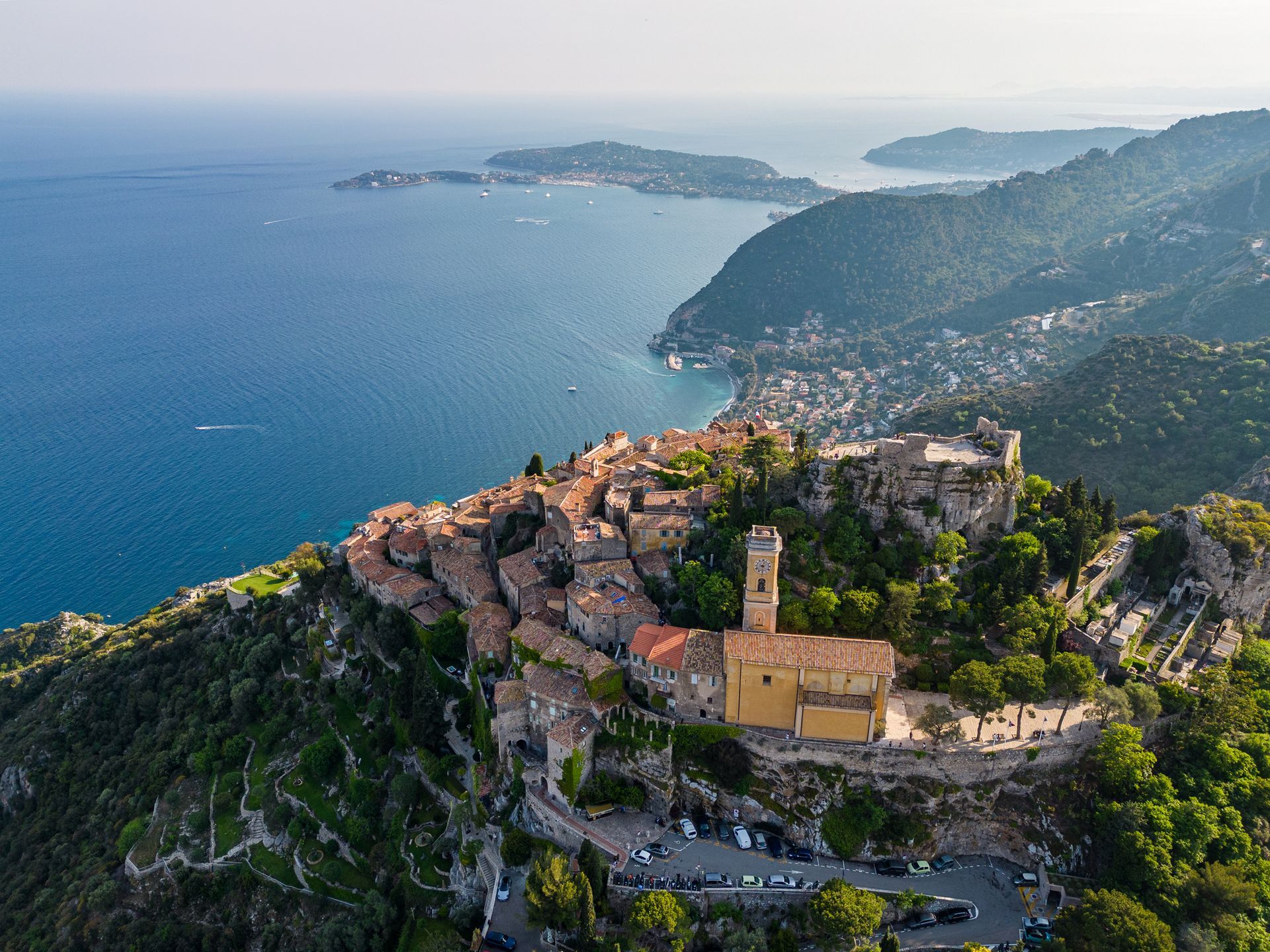 As you climb Col d’Èze, the view back toward Nice, Cap Ferrat, and Villefranche-sur-Mer becomes more and more expansive, like flying up into the sky.