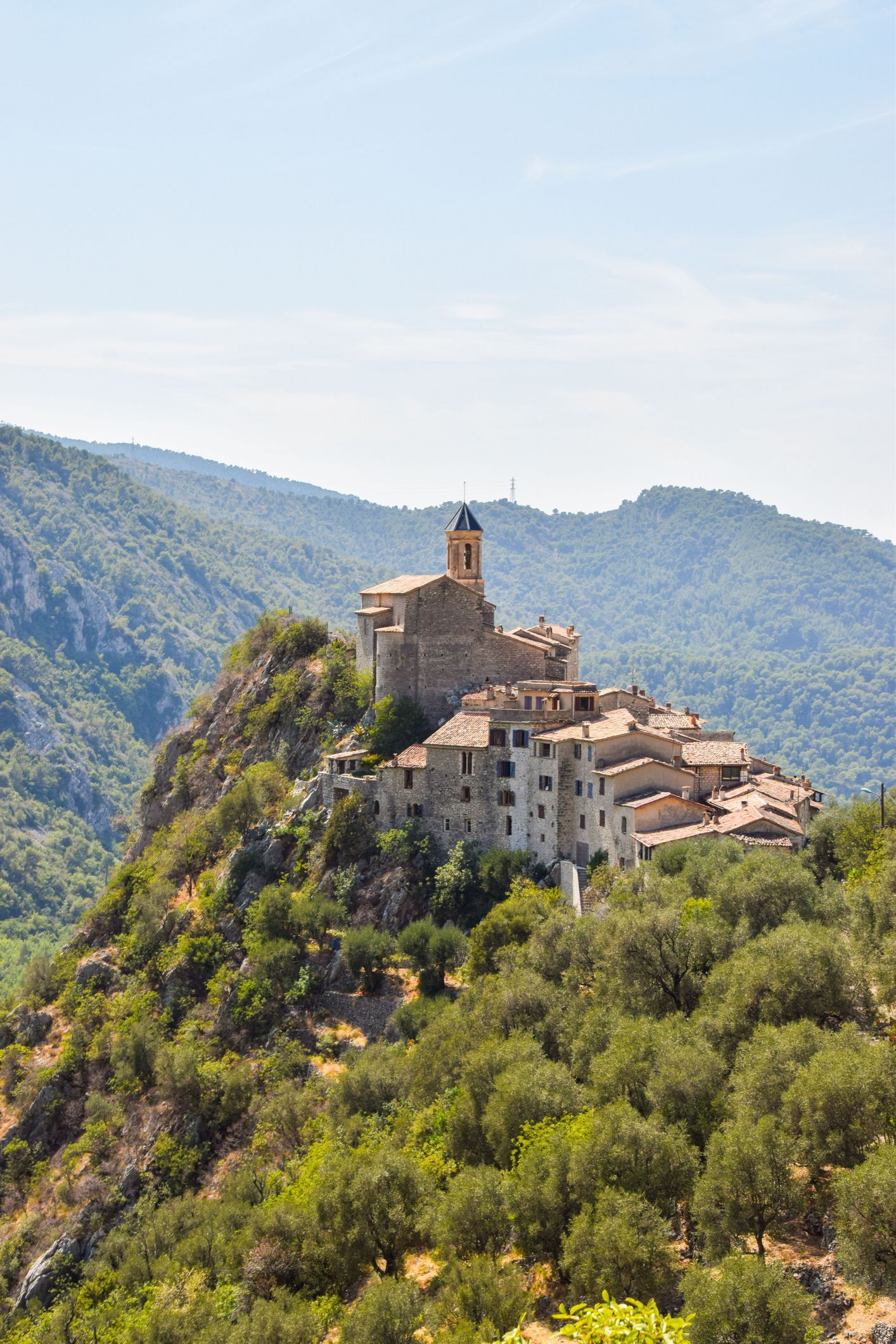 As you ascend, the landscape transforms from olive groves and dry stone walls into wooded hillsides of oak, beech, and larch, revealing sweeping vistas of the Mercantour foothills and the Mediterranean basin behind you.